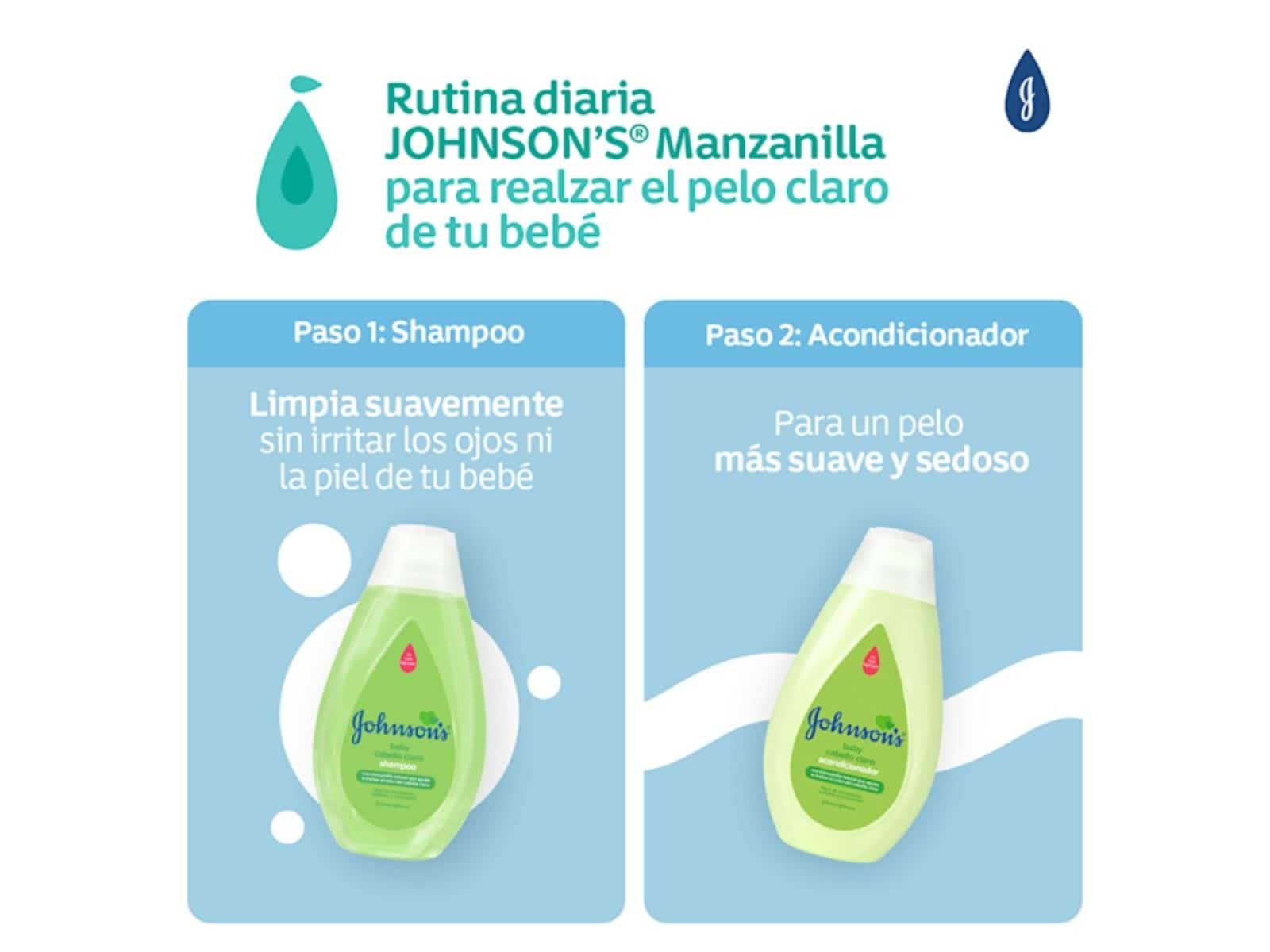Una fórmula más suave para dar el cuidado que el pelo de tu bebé necesita, el acondicionador JOHNSON’S® Baby Cabello Claro posee manzanilla natural, que ayuda a realzar el color del pelo claro. Además, deja el pelo delicado de tu bebé mucho más suave, sedoso y protegido*.