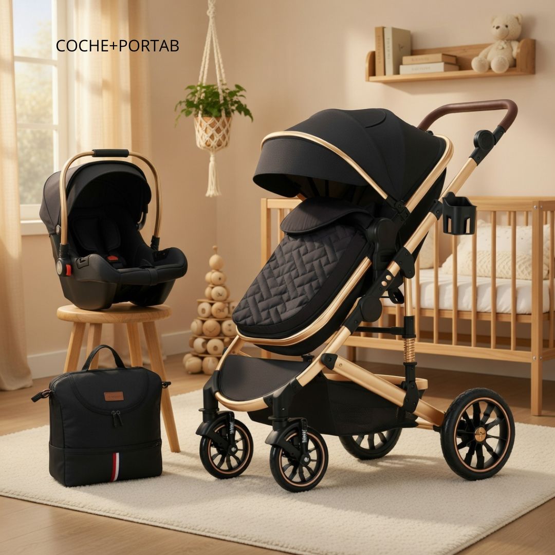 - Sistema 3 en 1 completo: Incluye cochecito principal + portabebé funcional (grupo 0+) adaptable al chasis y compatible con auto + moisés opcional (en algunos packs).