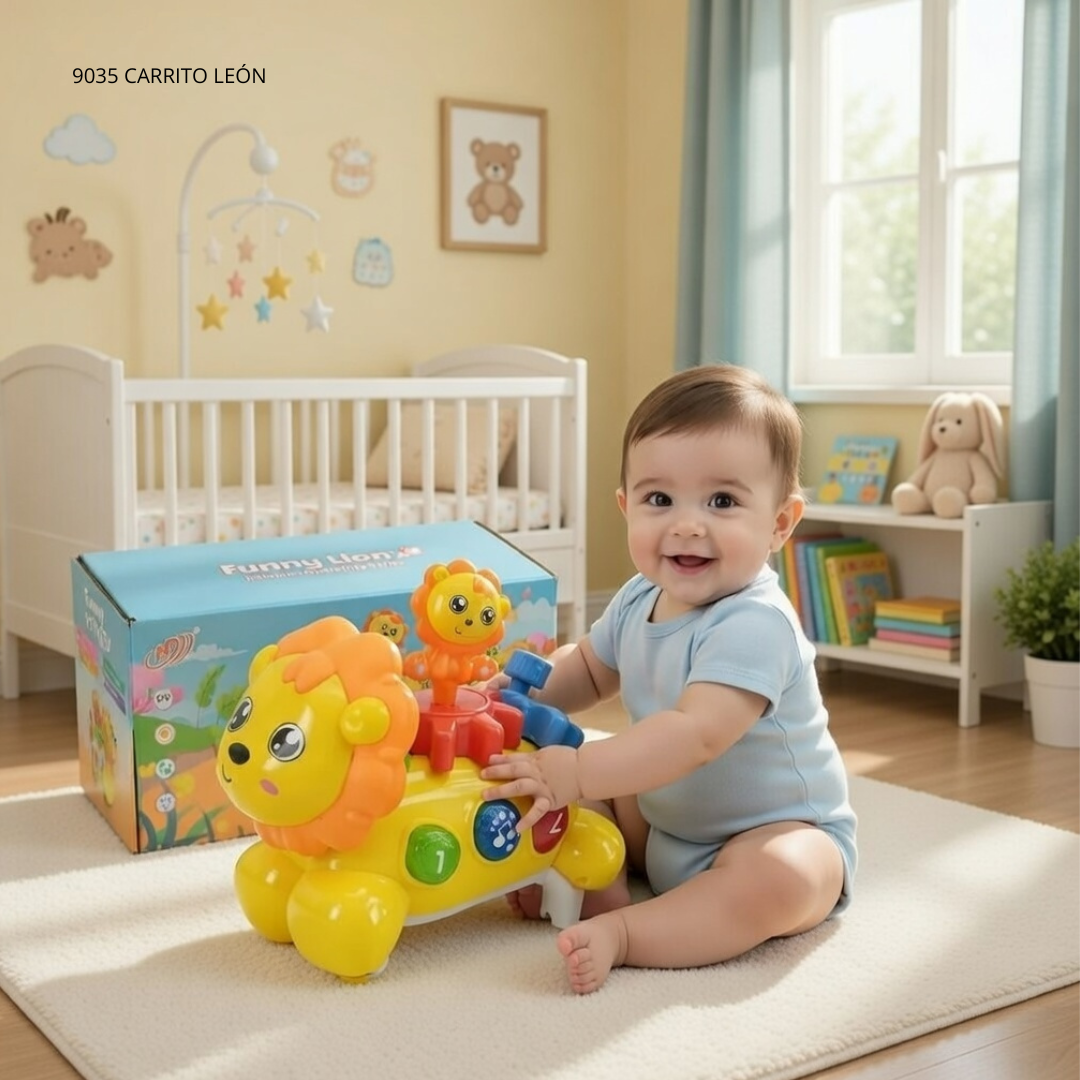 Juguete Didáctico Carro León Engranajes Luces y Sonido bebés – Diversión y Aprendizaje para tu Pequeño