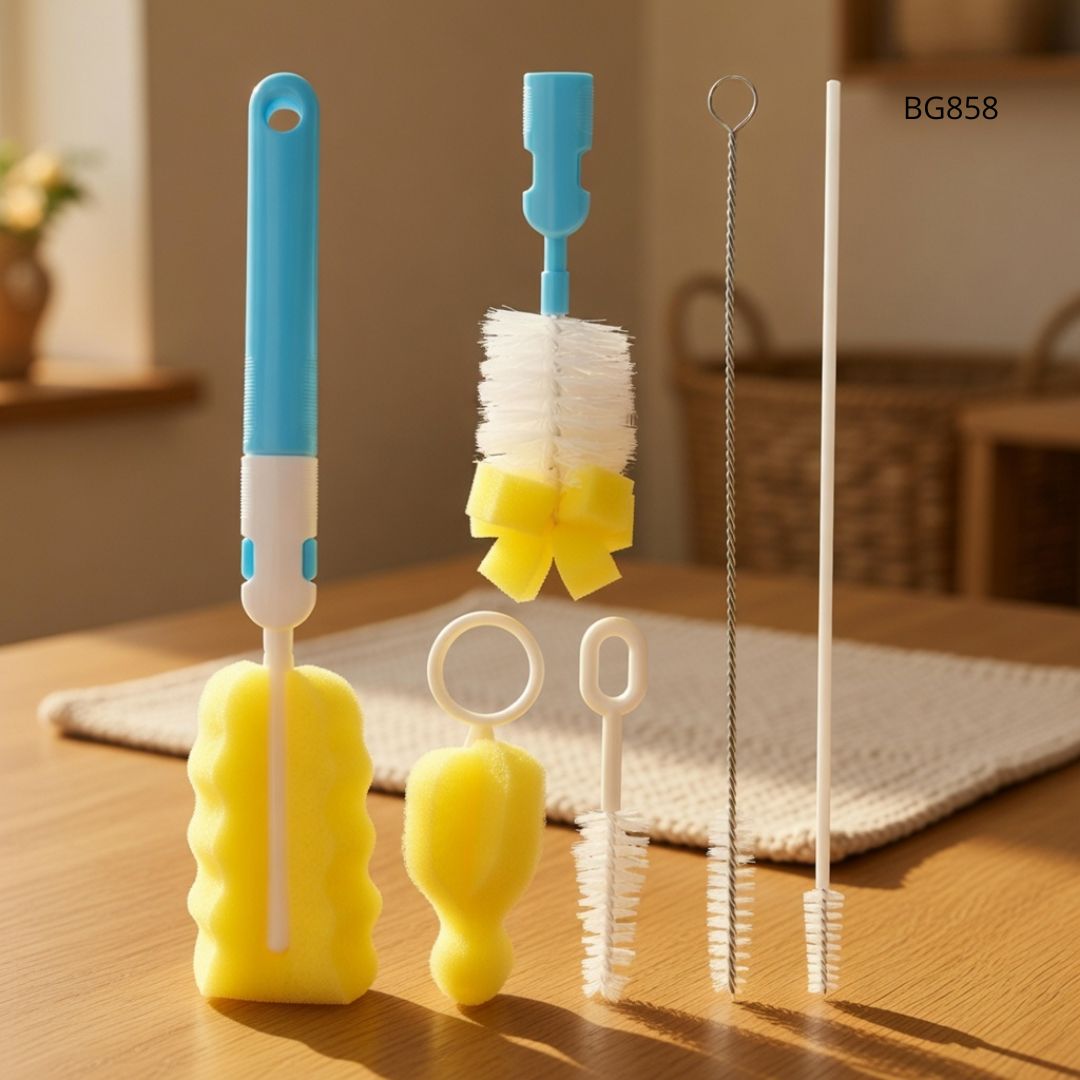 Este kit completo incluye varios cepillos y accesorios diseñados especialmente para limpiar a fondo teteros de cualquier tamaño, boquillas, tetinas, pajitas y las partes más difíciles de alcanzar. Con su diseño práctico y funcional en tonos azules suaves, combina estilo delicado con máxima eficiencia en la higiene diaria.