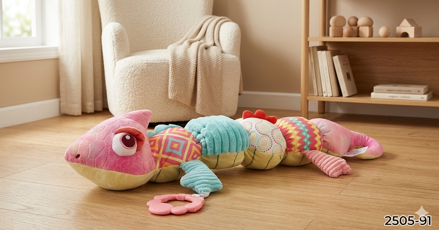 Este encantador Camaleón de Peluche no es solo un juguete, sino una herramienta de desarrollo completa para el bebé. Con un diseño alargado y segmentado, ofrece una explosión de texturas, patrones visuales y sonidos suaves (sonajero interno) que estimulan la curiosidad y el crecimiento sensorial desde los primeros meses.