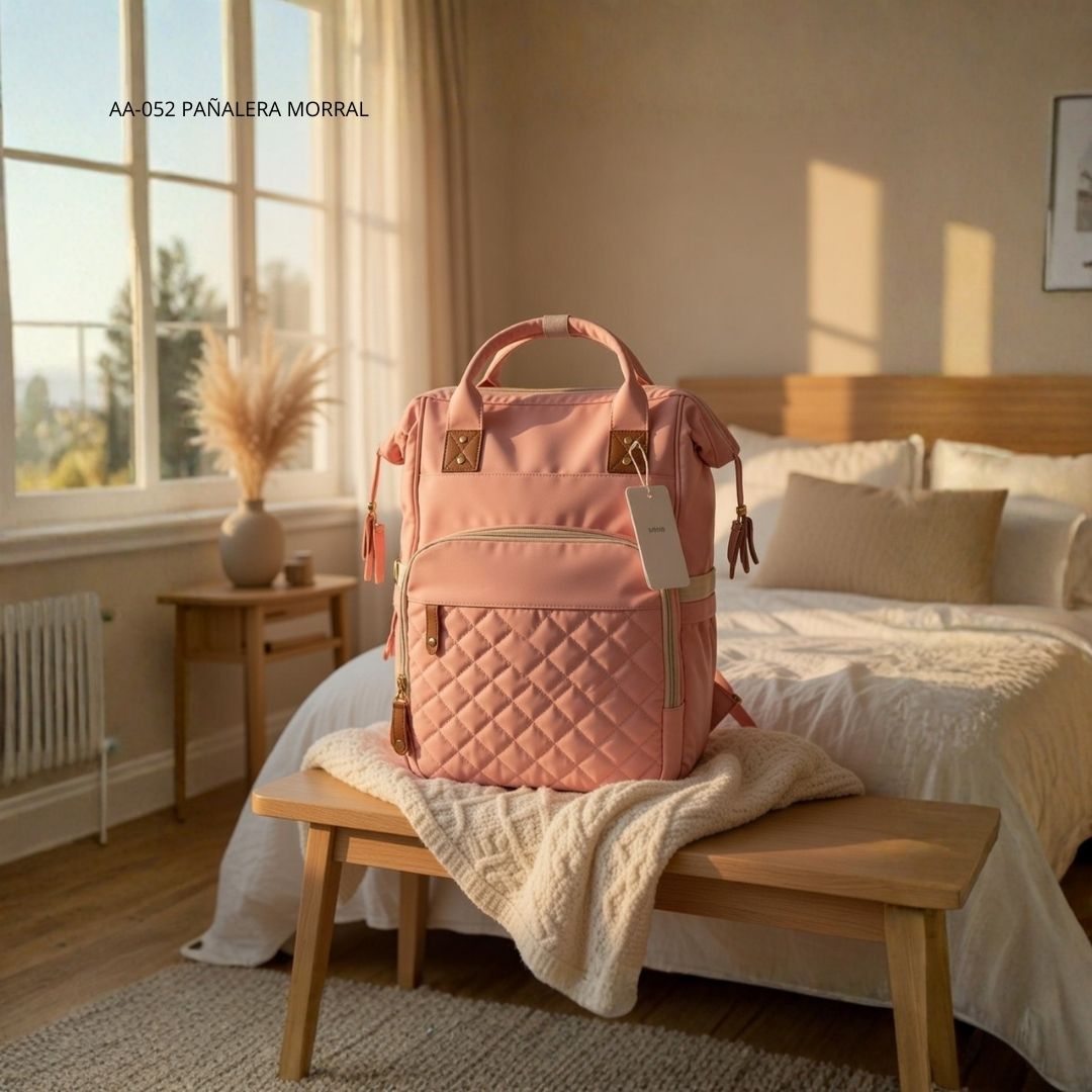 ¡Lleva todo lo que tu bebé necesita sin perder el estilo! Nuestra Pañalera Morral Baby Panda es la solución definitiva para los padres modernos que buscan comodidad y organización. Diseñada con un estilo contemporáneo en tono salmón/coral, este morral combina la elegancia de un accesorio de moda con la practicidad de un bolso técnico.