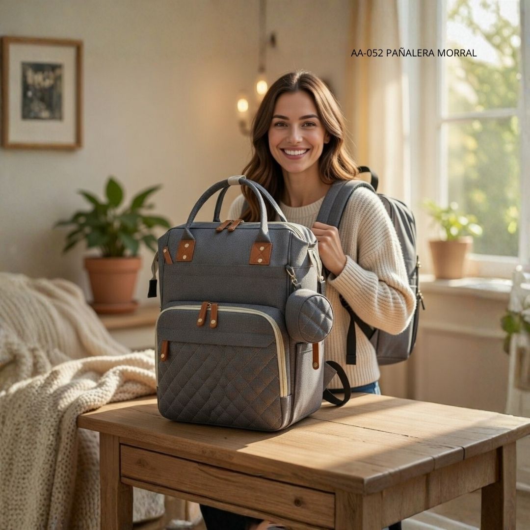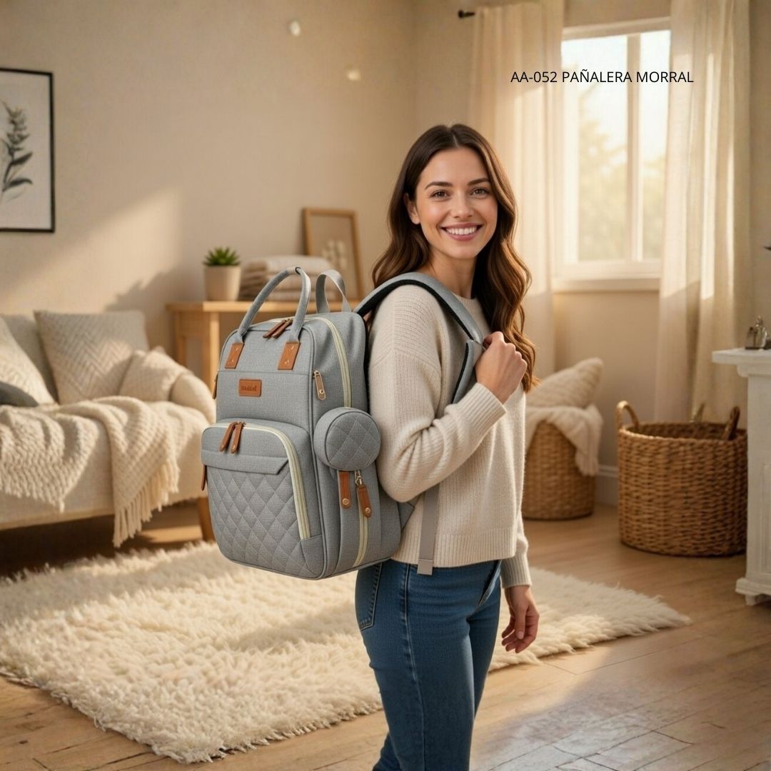 • Capacidad Inteligente: Compartimento principal espacioso con múltiples subdivisiones internas para separar pañales, ropa limpia, toallitas y juguetes.