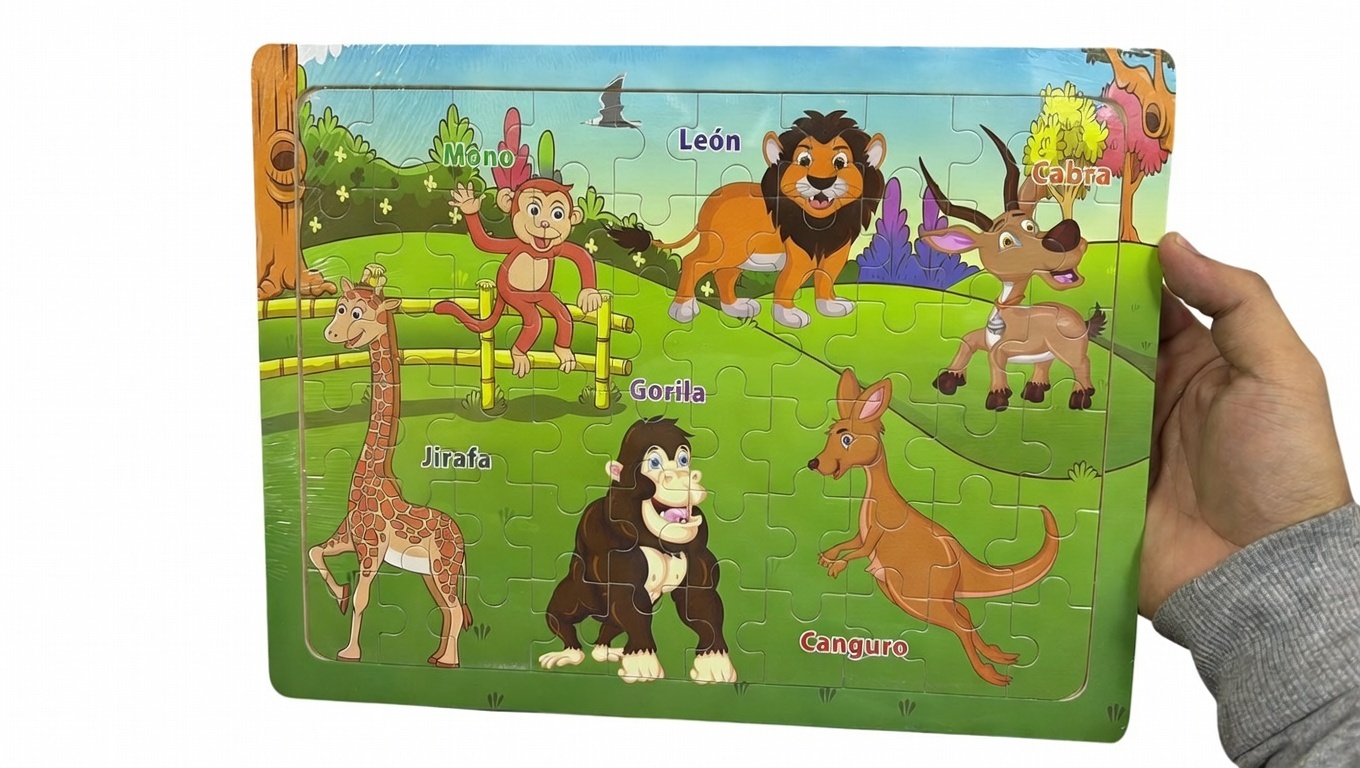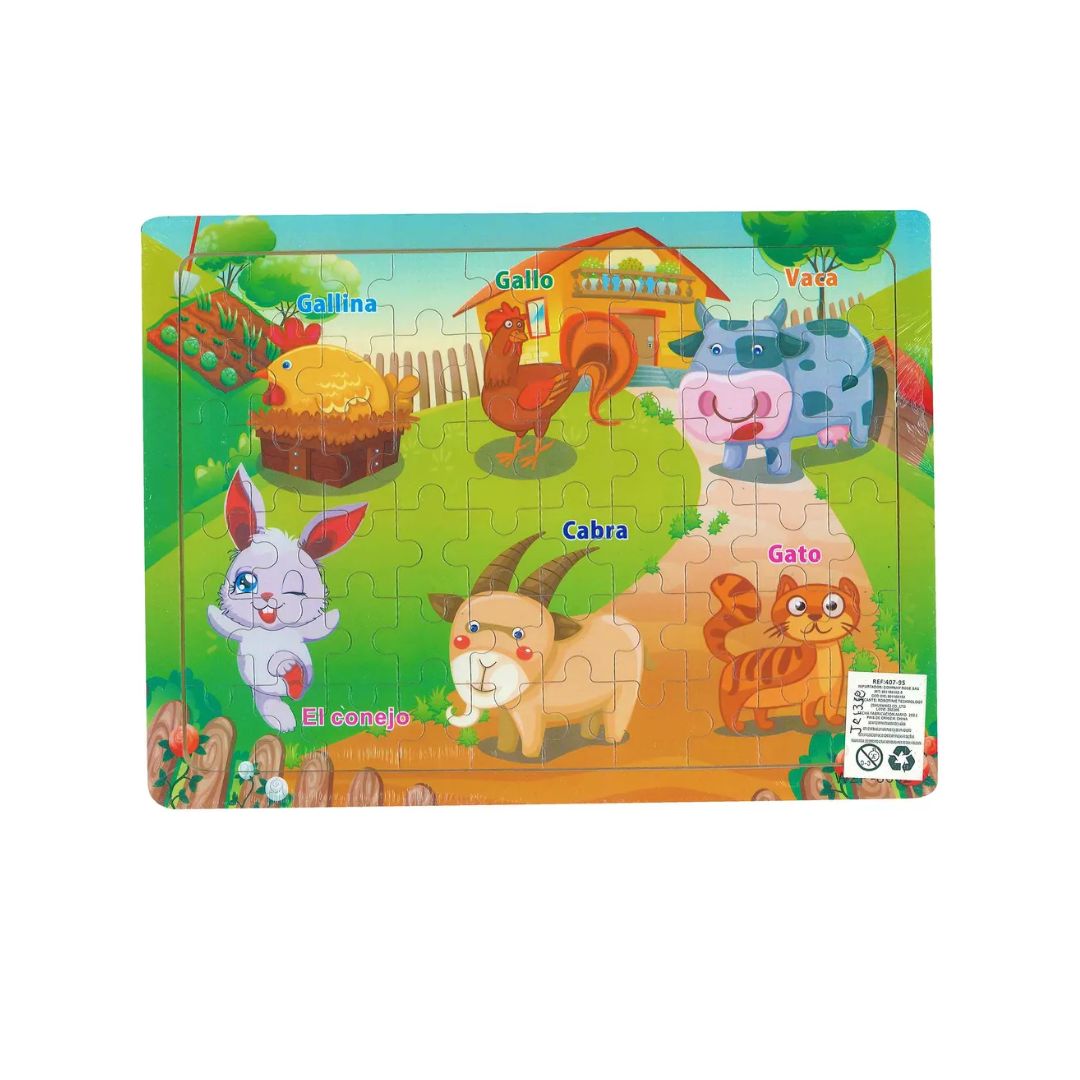 Estimula el aprendizaje y la diversión con el rompecabezas de madera Animales de la Granja de 60 piezas, un juguete didáctico diseñado para fortalecer la concentración, la motricidad fina y el reconocimiento de animales en los niños.