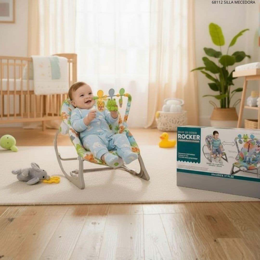 Es el complemento ideal para brindar comodidad, entretenimiento y relajación desde los primeros meses de vida. Diseñada con un asiento acolchado y reclinable, permite que tu bebé descanse, juegue y se relaje en un mismo espacio seguro.