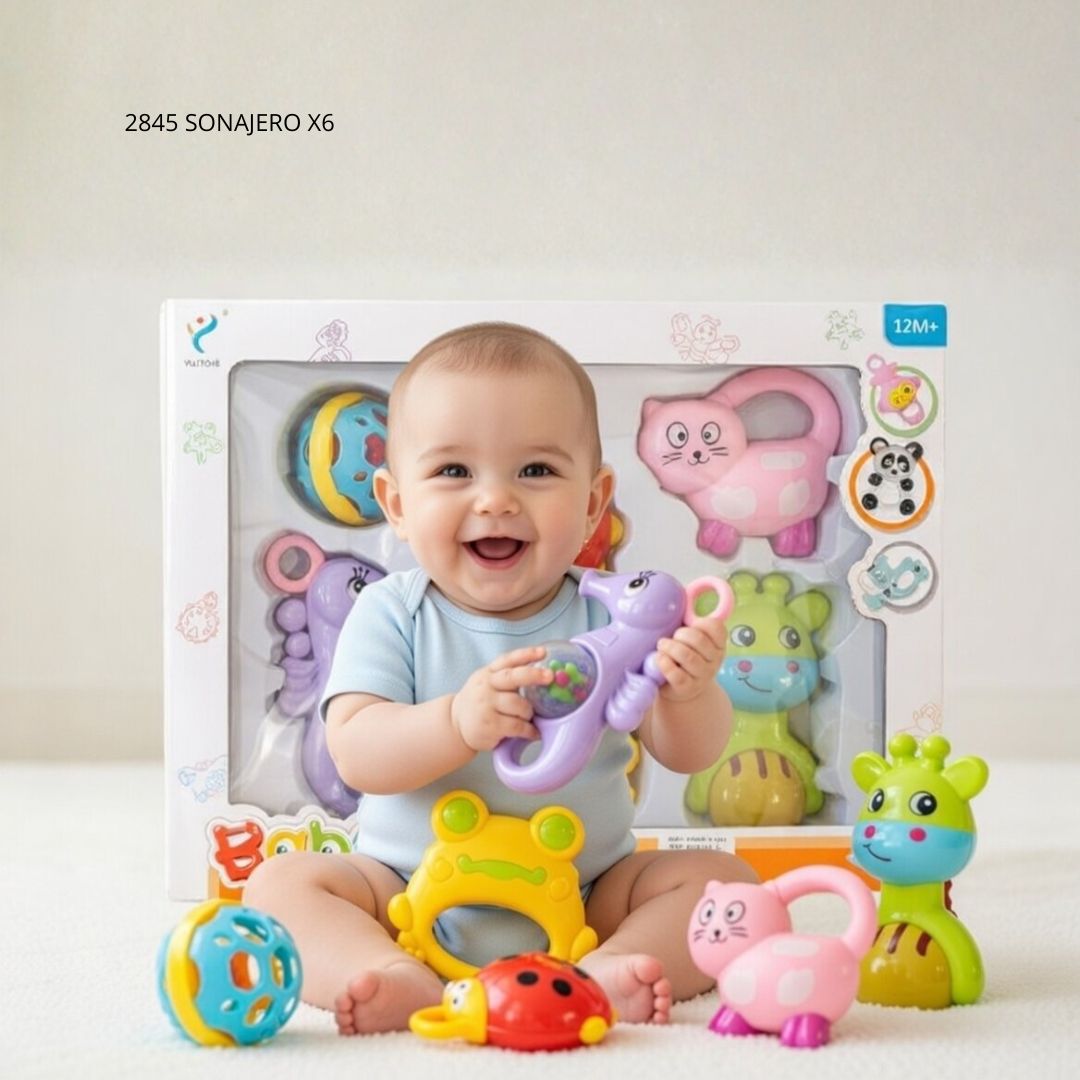 ¡El juguete perfecto para que tu peque explore el mundo con risas y sonidos alegres! Este set de 6 sonajas con formas de animalitos tiernos es ideal para bebés a partir de 12 meses (pero muchos papás lo usan desde antes con supervisión).