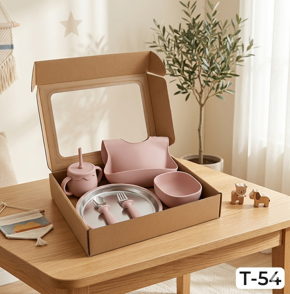 Lleva la hora de la comida a otro nivel con el set T-54, la combinación perfecta entre la higiene superior del acero inoxidable y la practicidad de la silicona de grado alimenticio. Este kit está diseñado ergonómicamente para facilitar el aprendizaje de la autoalimentación con estilo y seguridad.
