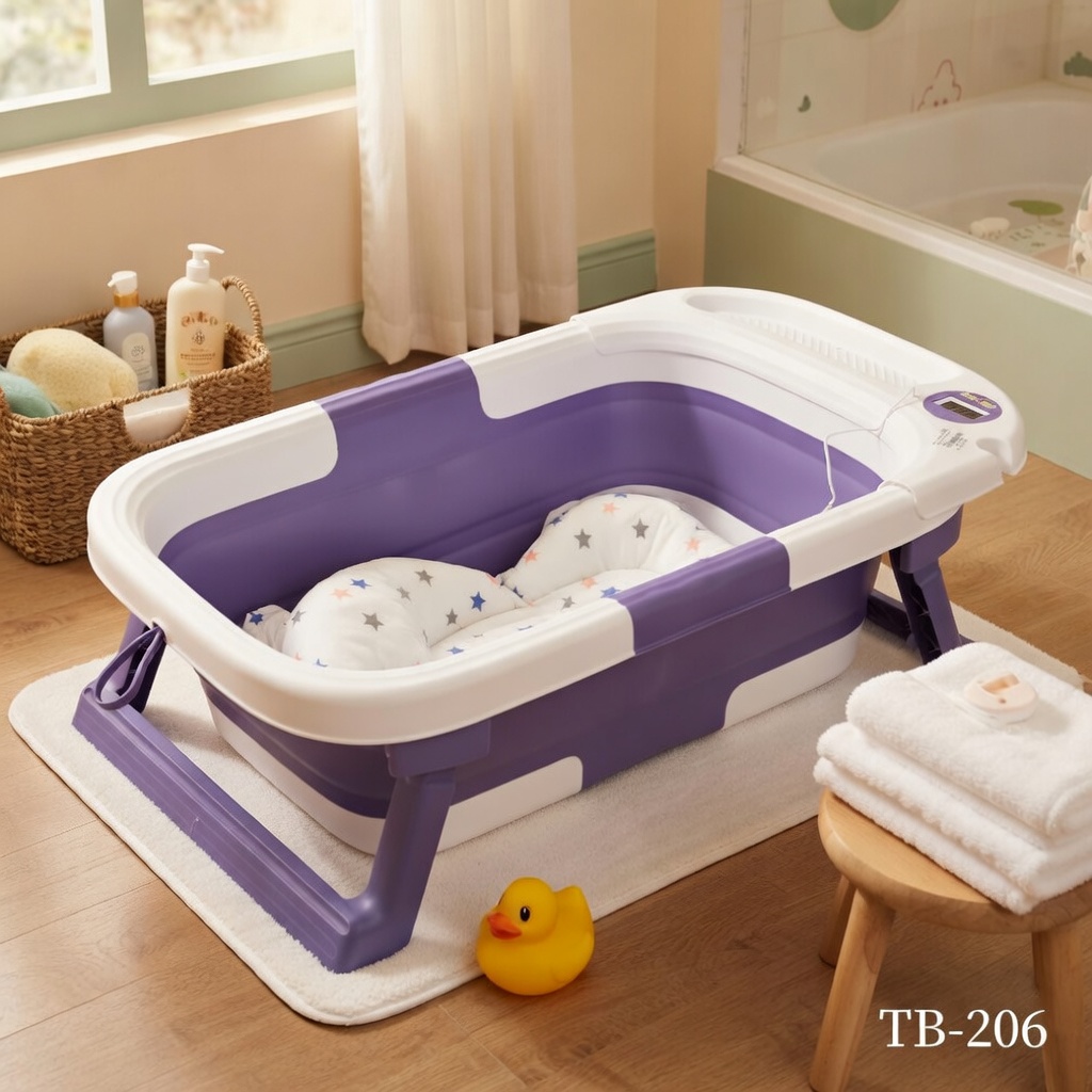 Tina Bañera Plegable Para Bebé Con Desagüe, Termómetro Y Cojín Bañera -TB-206